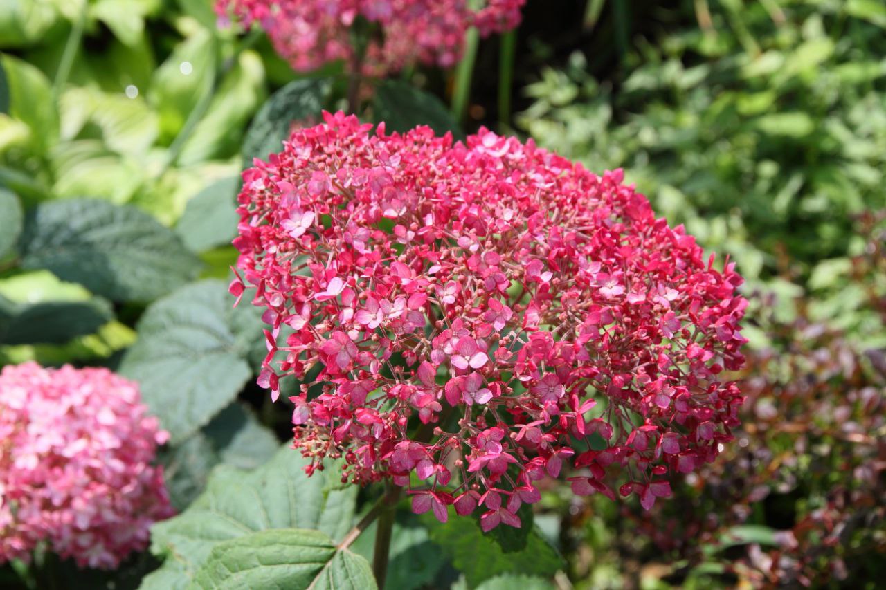 Большую часть участка занимают зеленые лужайки и удивительно красивые цветники. Раиса Александровна показывает новый ранний сорт древовидной гортензии: крупные соцветия насыщенного розового цвета вот-вот расцветут в полную силу. Чуть позже зацветет нарядными белыми шапками гортензия сорта "Белый медведь". А еще на участке есть флоксы разных расцветок, бузульник, белая и желтая лапчатка, барбарис, колокольчики – всего не перечислить!