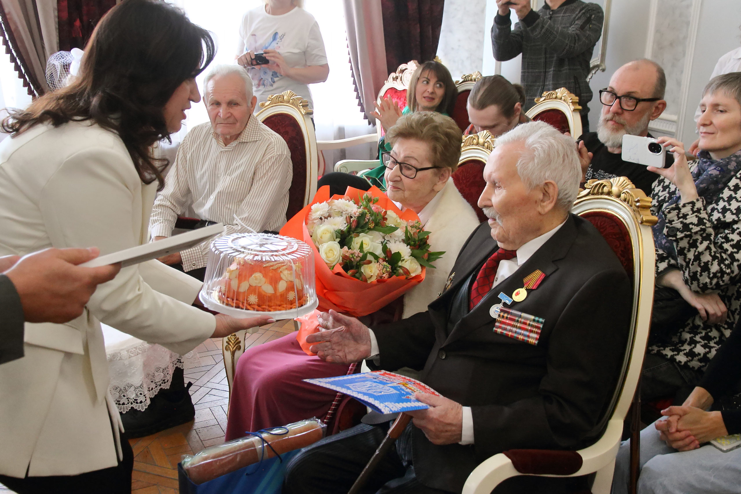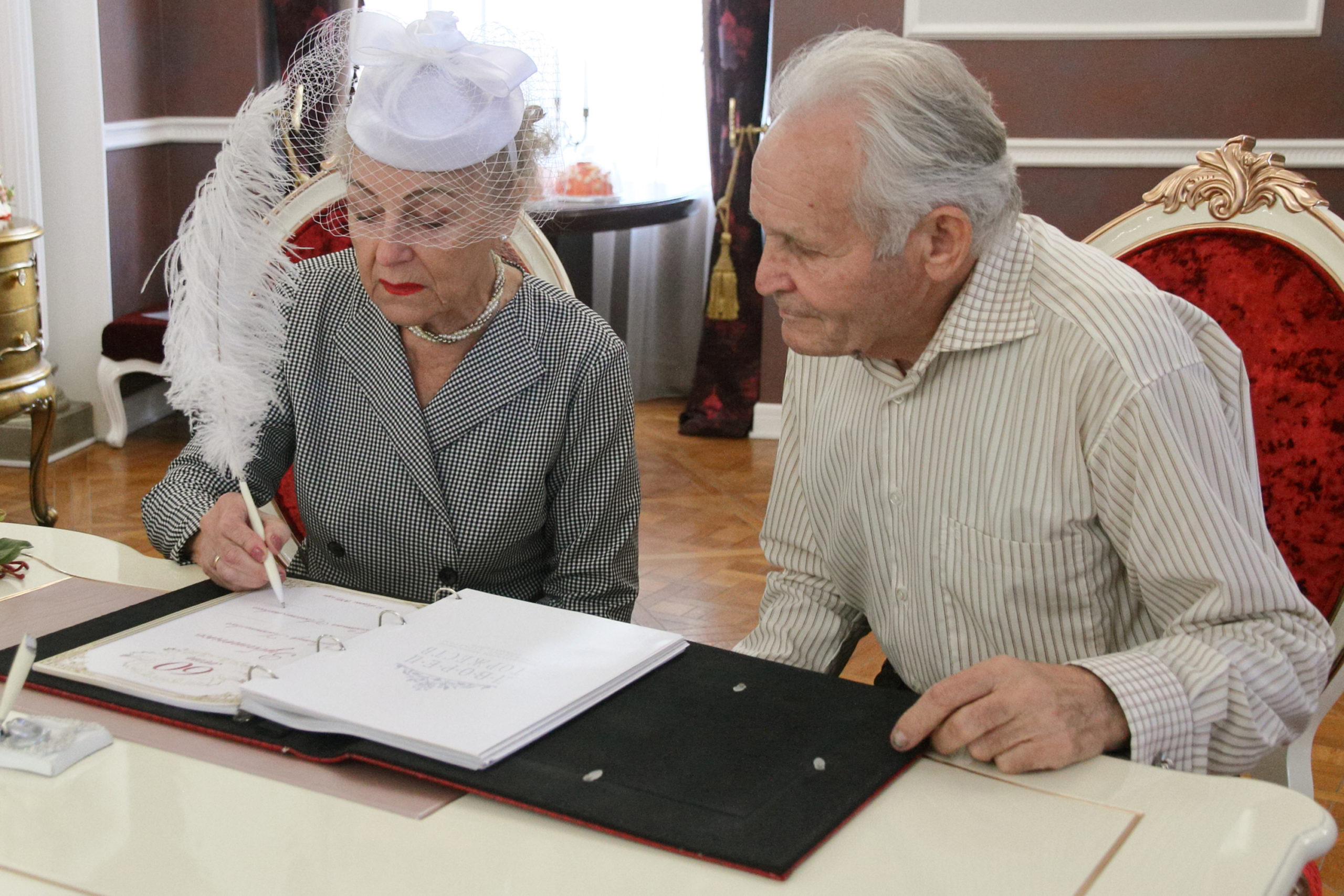 С бриллиантовыми, изумрудными и золотыми свадьбами супругов поздравили Глава городского самоуправления Калуги Юрий Моисеев, начальник управления ЗАГС Майя Паненкова и директор Дворца торжеств Александр Таратин.