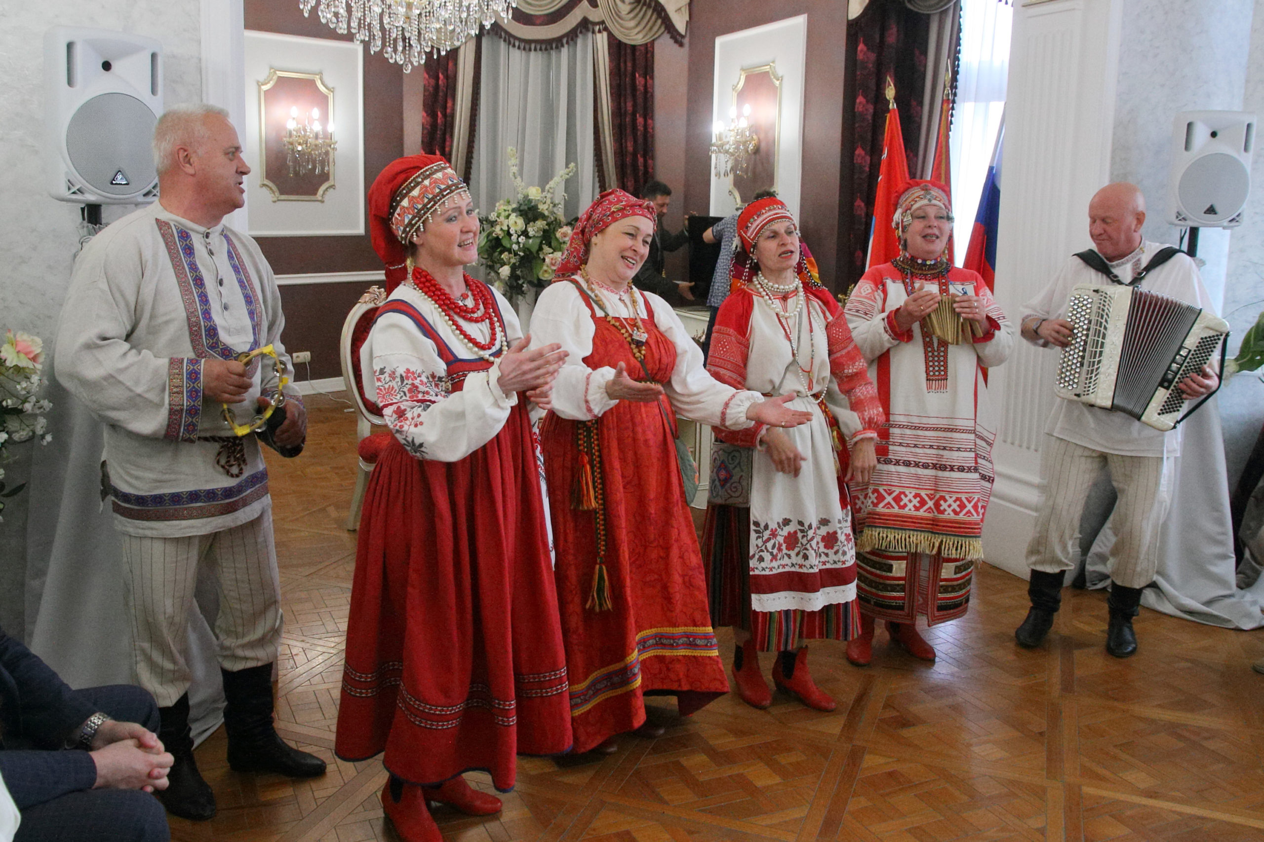 Калужский фольклорный ансамбль "Лазори" провёл для юбиляров традиционный свадебный обряд. Их имена занесли в Почётную книгу управления ЗАГС, также им вручили цветы, подарки и поздравительные адреса от Городского Головы города Калуги.