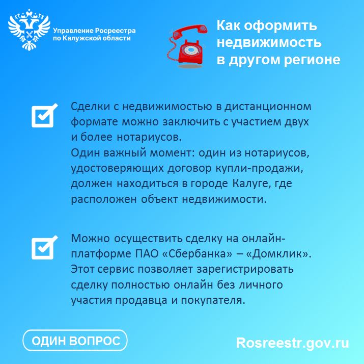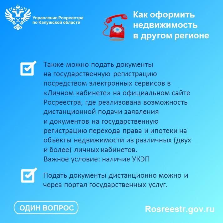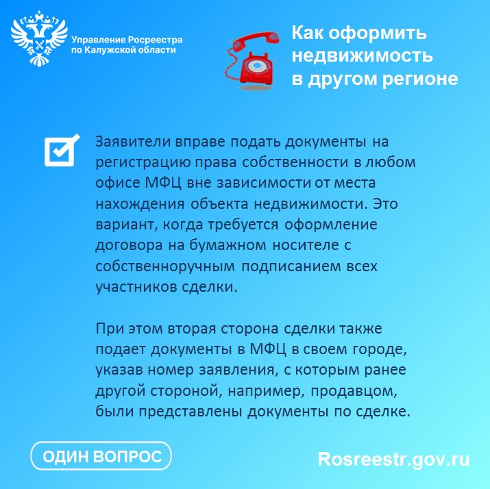 17 сентября в Управлении Росреестра по Калужской области состоялась телефонная консультация в режиме «горячая линия» на тему: «Как оформить недвижимость в другом регионе?»
