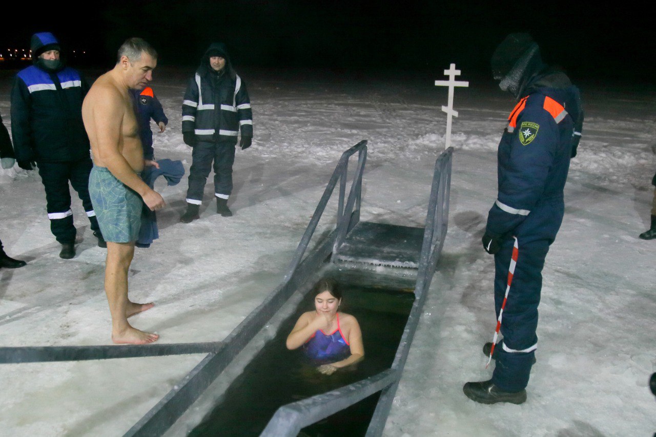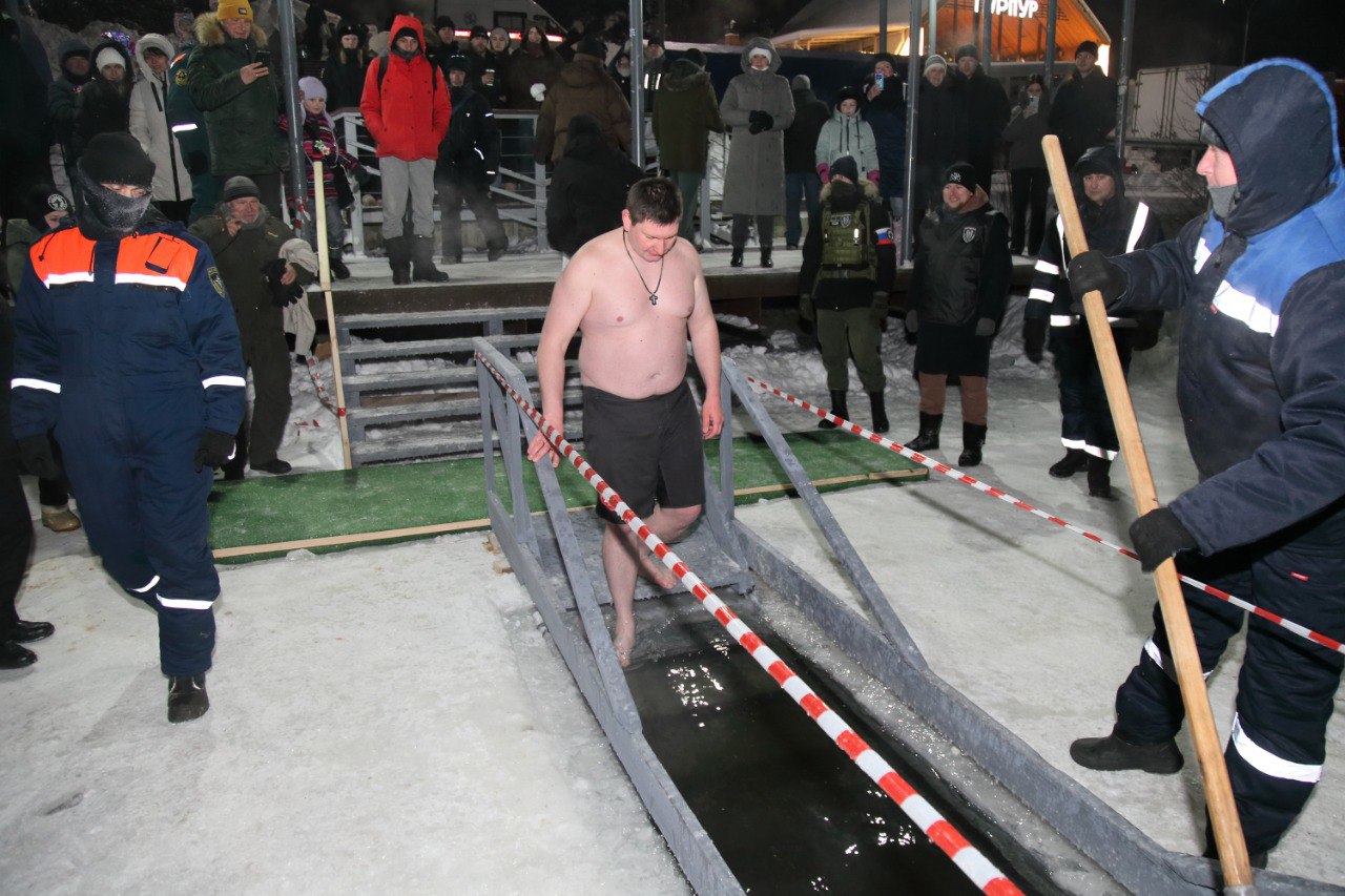 На берегу для них были оборудованы раздевалки, выныривающих из проруби поили горячим чаем. За тем, чтобы никто не пострадал, следили сотрудники МЧС, службы спасения, полицейские и медики.