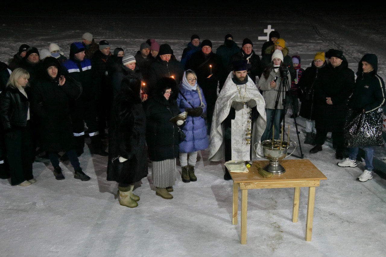 Несколько десятков калужан вечером 18 января окунулись в воды Яченского водохранилища, во льду которого к Крещению прорубили иордань.