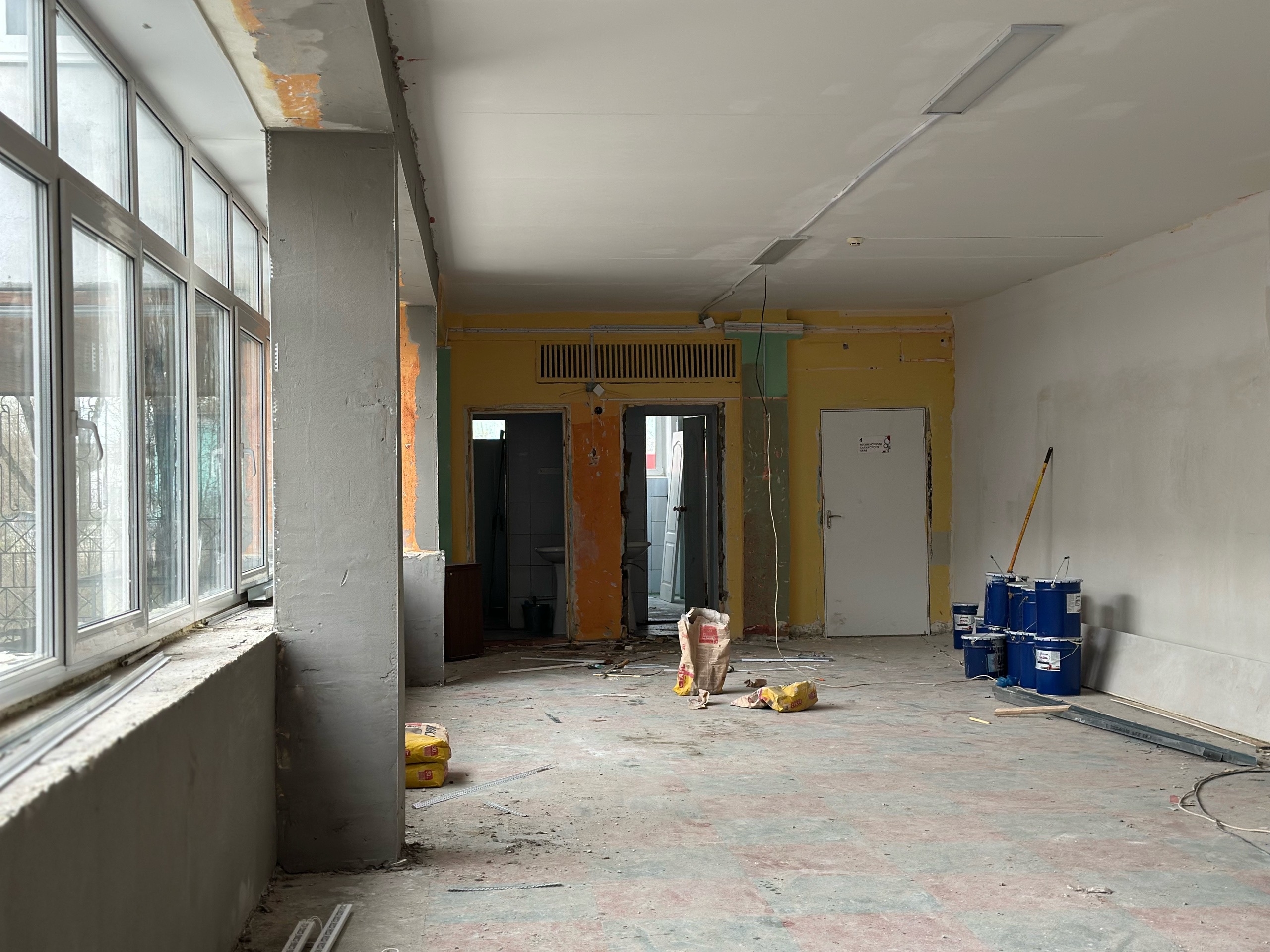 Здание 1986 года постройки давно нуждалось в серьёзном обновлении, и сейчас ремонт не ограничивается косметикой. Здесь идёт масштабная работа, которая затрагивает практически все элементы школы. На площадке ежедневно трудятся до 40 специалистов. Основные демонтажные работы внутри здания подходят к завершению, параллельно ведётся отделка помещений. Половину оконных блоков уже заменили на новые. Активно продвигается монтаж инженерных сетей.
