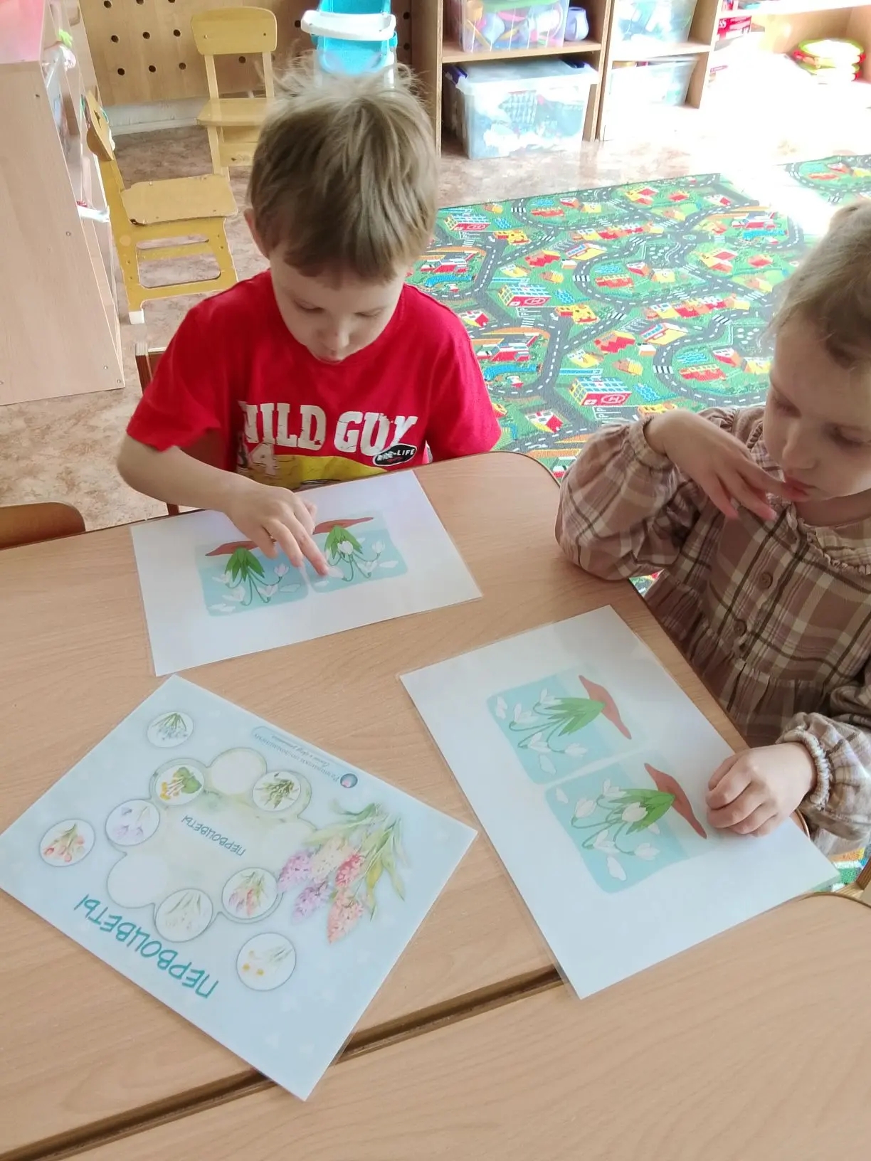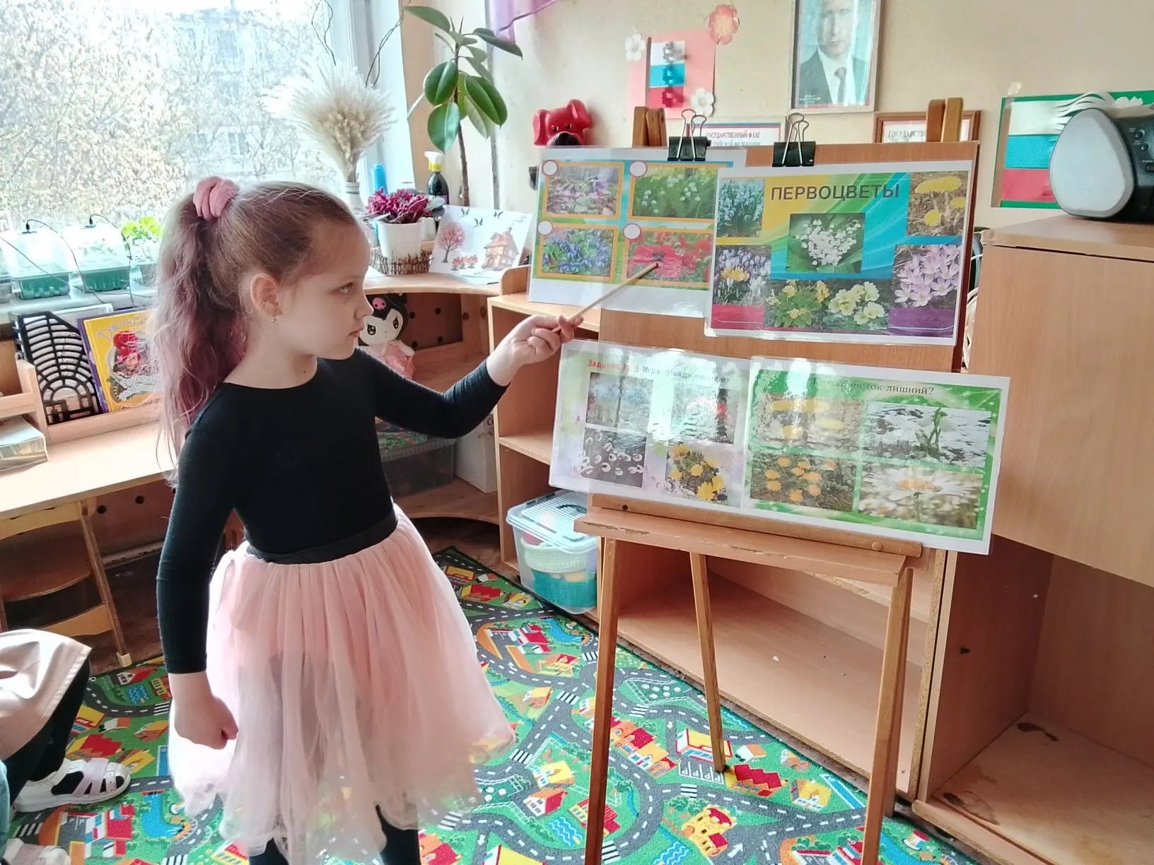 Малыши уже умеют отличать фиалки от пролесок, а на занятиях с увлечением играют в игру «Найди лишний цветок» и ищут отличия на картинках.