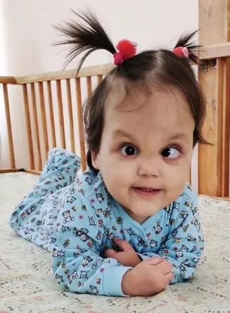 Алина спокойная, доброжелательная девочка. Любит внимание со стороны взрослых. Оживляется во время контакта со взрослым, предпочитает тактильное общение. Алина с интересом взаимодействует с игрушками, размахивает ими, стучит. Ищет взглядом названные предметы. Выполняет плясовые движения под музыку. Певуче гулит. Алина сама садится, сидит, ложится, встает, держась за барьер. Аккуратно пьет из чашки. Аппетит хороший, сон спокойный, продолжительный.