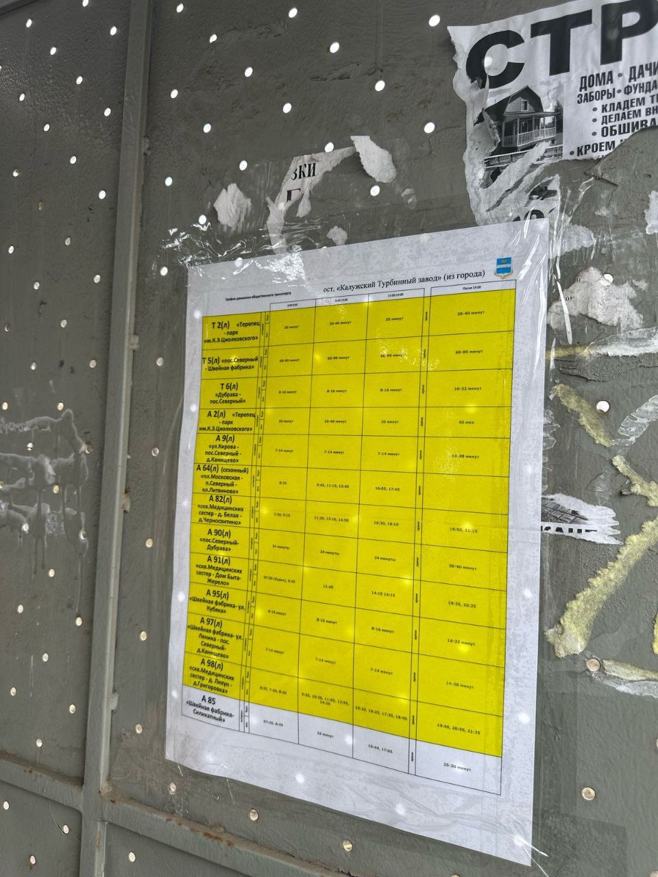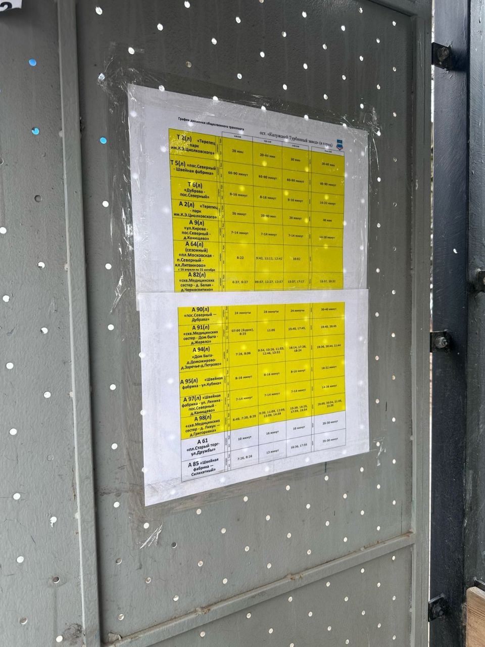 В Городскую Управу города Калуги поступили обращения по вопросу размещения информации о расписании движения транспортных средств на остановочных пунктах «Калужский турбинный завод», «ул. Чапаева», «Почта».
