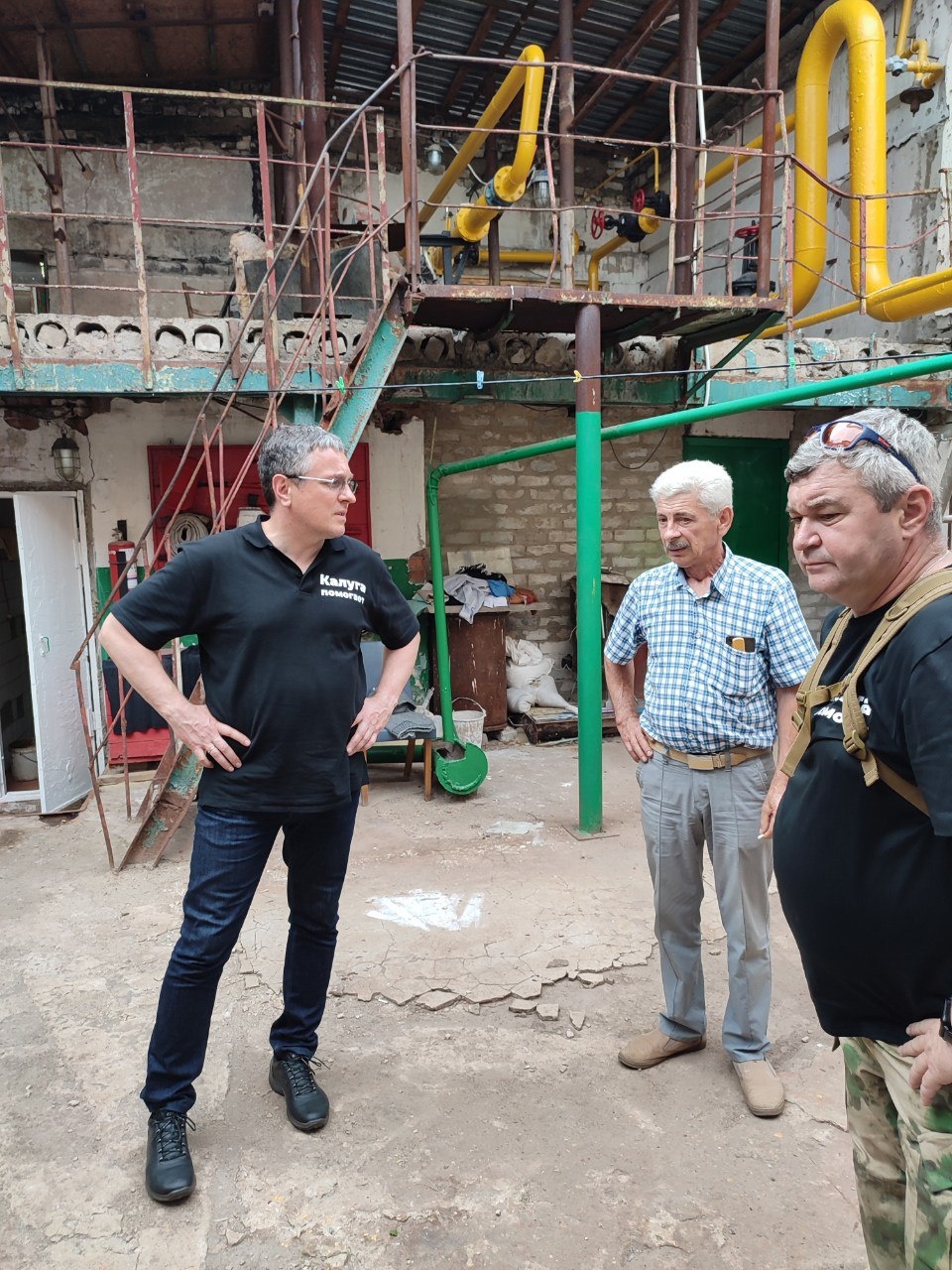 Градоначальник познакомился с мэром Первомайска Сергеем Колягиным. Вместе они осмотрели котельные, которые в ближайшее время предстоит восстановить. К этой работе подключится Калуга и её специалисты.